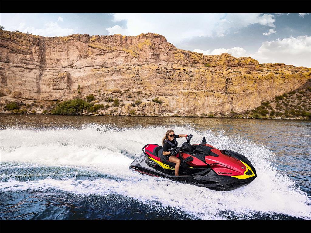 Kawasaki Smart Reverse with Deceleration electrically deploys the reverse bucket. Activated with a thumb switch on the right handle, it enables thrust to be controlled with one hand. When deployed, the reverse bucket contributes to deceleration.