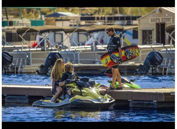 Rearview camera mounted aft of the rear seat offers riders a supplemental rearward view behind the JET SKI. Convenient when towing a waterskier or wakeboarder, or when docking.